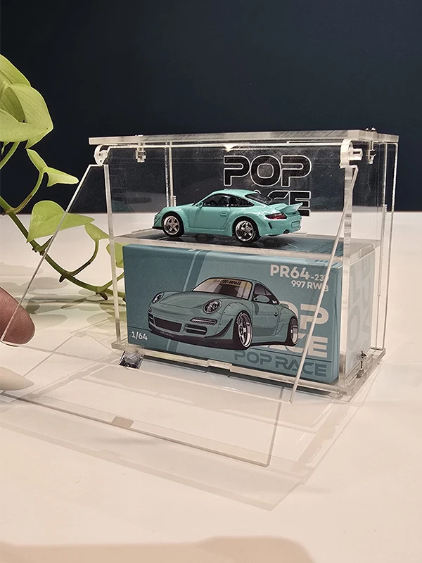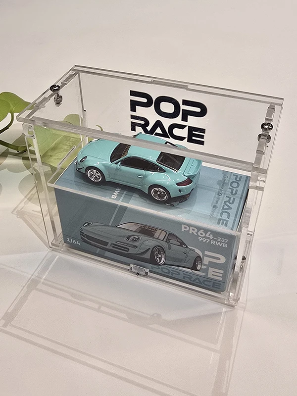 Engineered with precision from diamond-clear acrylic, this display case offers unparalleled clarity, robust dust management, and an elegant presentation. It features a fully lockable, easy-assembly design with a premium UV-printed PopRace logo for a high-end branded finish.