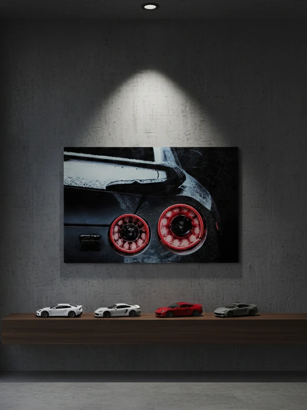 Capture the raw power of the Nissan GT-R with this premium acrylic wall art. Featuring the legendary “Godzilla” circular tail lights in a vibrant, high-gloss glow, this piece brings a cinematic, high-performance edge to any room. It is the perfect statement piece for modern offices, garages, or automotive enthusiast galleries.